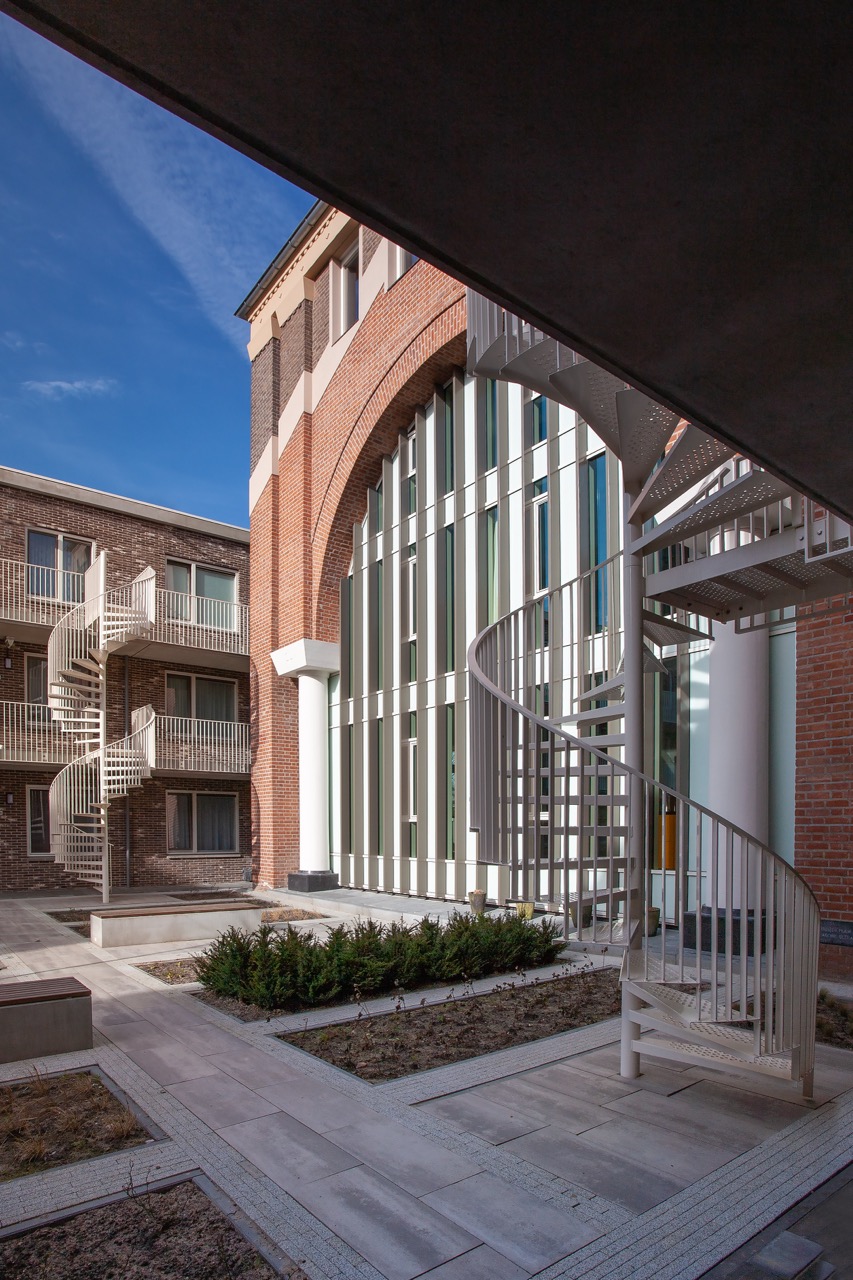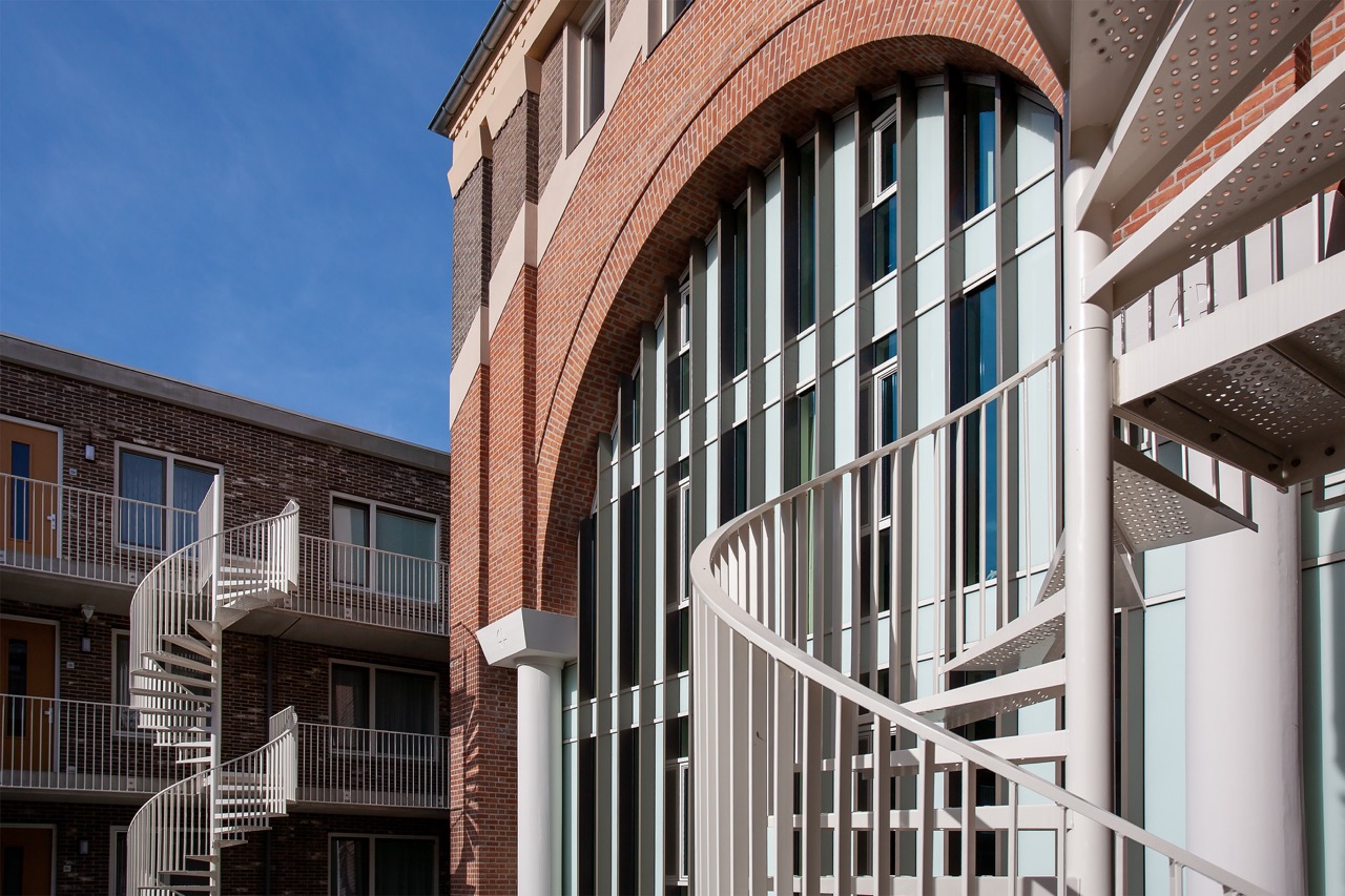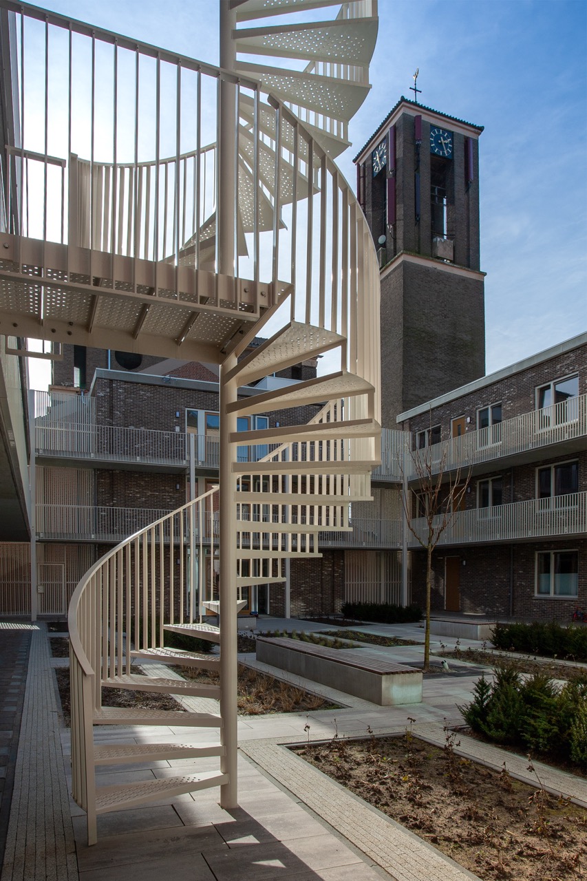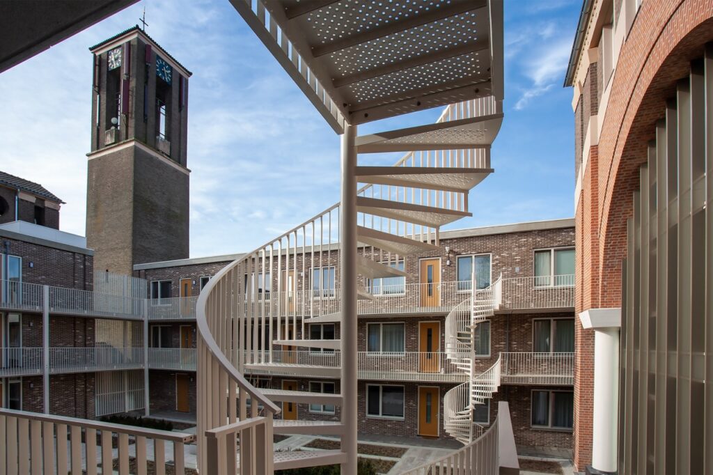 Stalen trappen geleverd voor het project Hof van Gendt. Gendt is een plaats onder de rook van Nijmegen/Arnhem. De voormalige Martinuskerk is herontwikkeld tot woonkern. Er zijn 22 appartementen gerealiseerd in het “middenschip” van de kerk. De moderne stalen trappen zijn uitgevoerd met een lamellen balustrade met rondgewalste rechthoekige leuning. Het geheel is thermisch verzinkt en voorzien van 2-laags witte poedercoating.